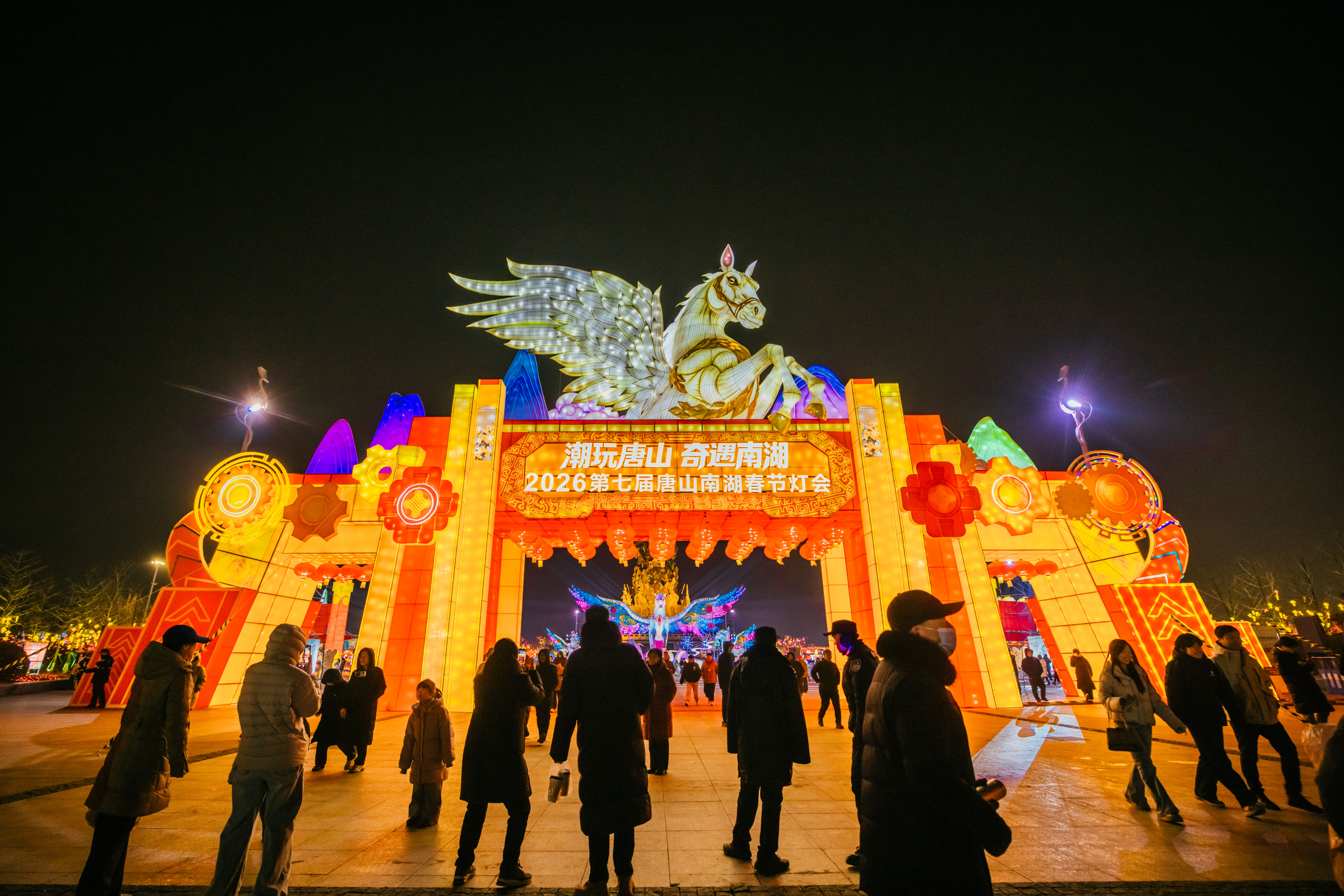 以春为约、以灯为媒。2026唐山南湖春节灯会如约而至,八方游客纷至沓来。这场承载着马年期许、涌动着文旅活力、融合着城市底蕴的光影盛会,正以全新的姿态和面貌,让游客在团圆相聚中感受浓浓的年味儿,在沉浸式体验中读懂唐山的温情与活力、传统与潮流,让“骐骥中国年、马上趣唐山”的美好印记定格在马年新春最动人的团圆与喜乐中,更让“唐山之好、唐山之美、唐山之新”绽放出更加璀璨夺目的光彩。