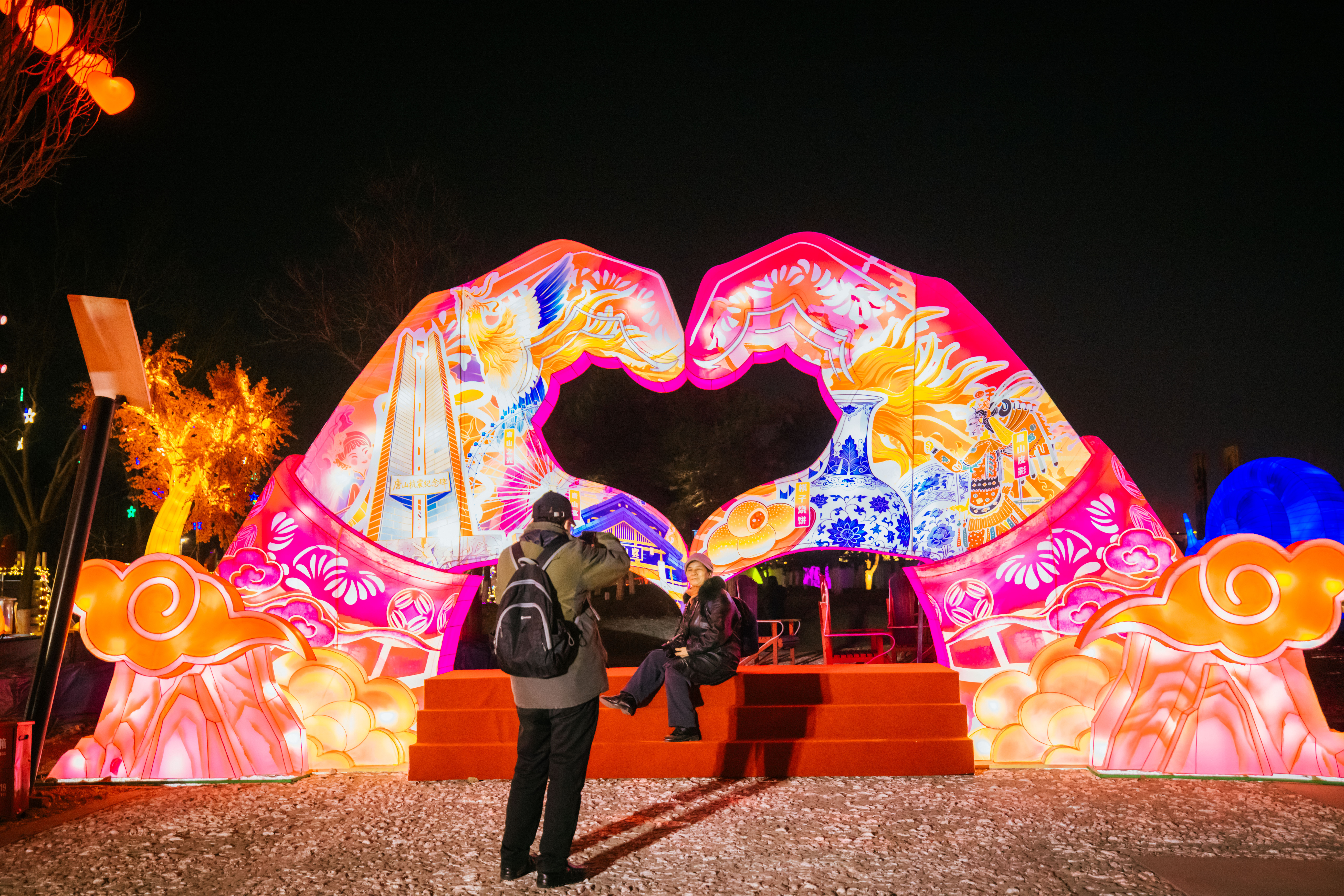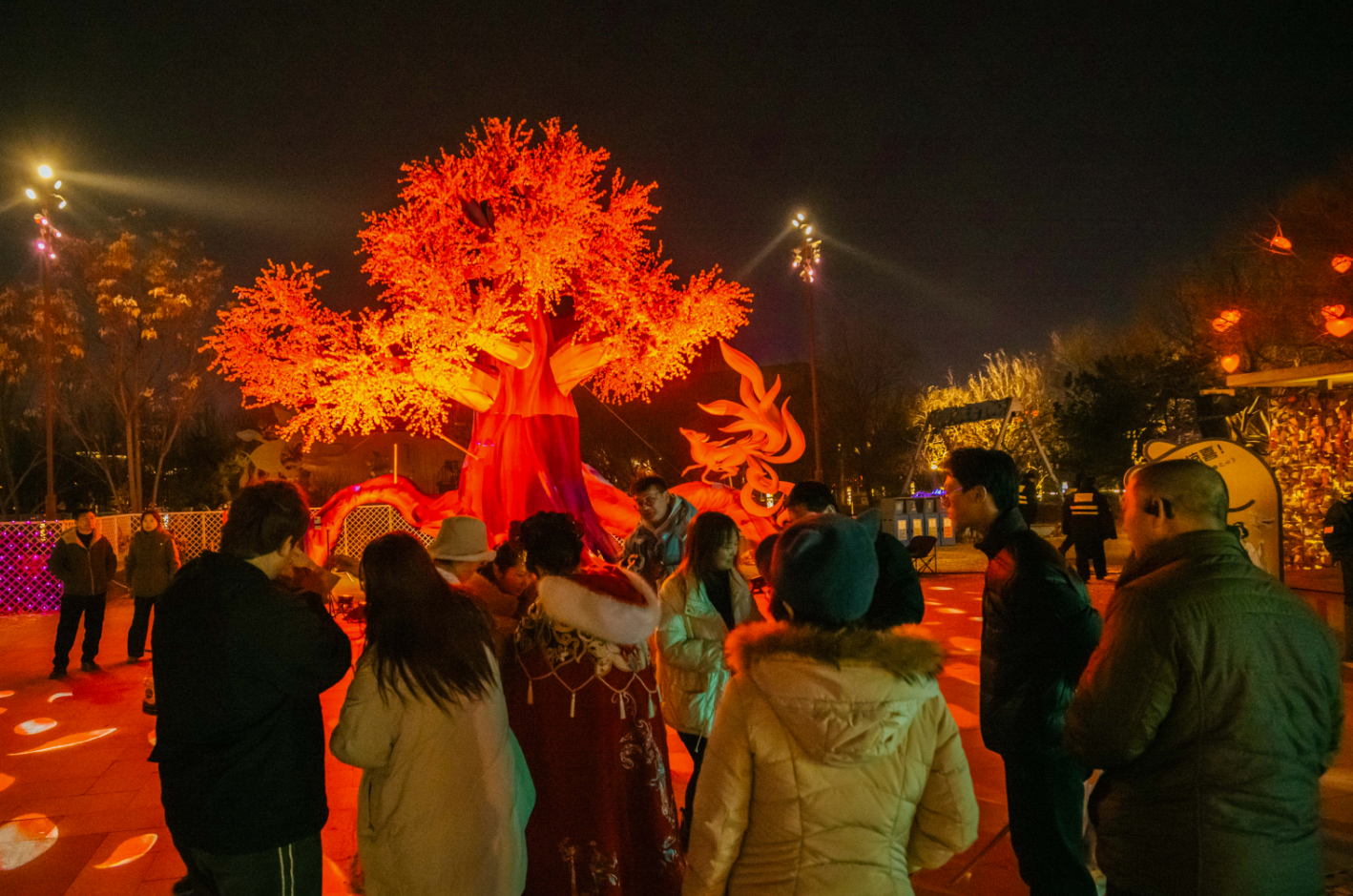 唐山热恋主题赏灯区则充分融入国风浪漫元素,凤凰女神、三生树、唐山之心等灯组将中式浪漫与马年新春的美好期许完美融合,打造出一处集光影浪漫、互动体验、情感表达于一体的沉浸式爱情秘境,成为情侣约会、新人打卡的首选之地。