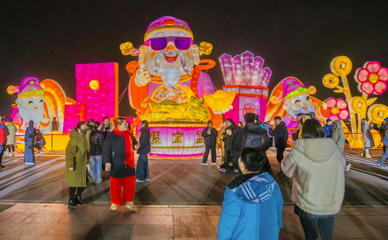 走进灯会现场,灯光璀璨、人声鼎沸。伴随着欢快的新春旋律,浓浓的年味儿扑面而来。潮趣新春赏灯区主打年味主题,作为灯会主门区的潮玩新春巨型灯组尤为吸睛,灯组上的奔马造型呼应马年新春,寓意骐骥奔腾、前程似锦;以梦为马灯组通体流光溢彩,勾勒出骏马踏浪、星河为伴的唯美画面;马上暴富等灯组则充分融入传统年俗元素,将新春氛围感拉满,成为游客打卡拍照的热门点位。
