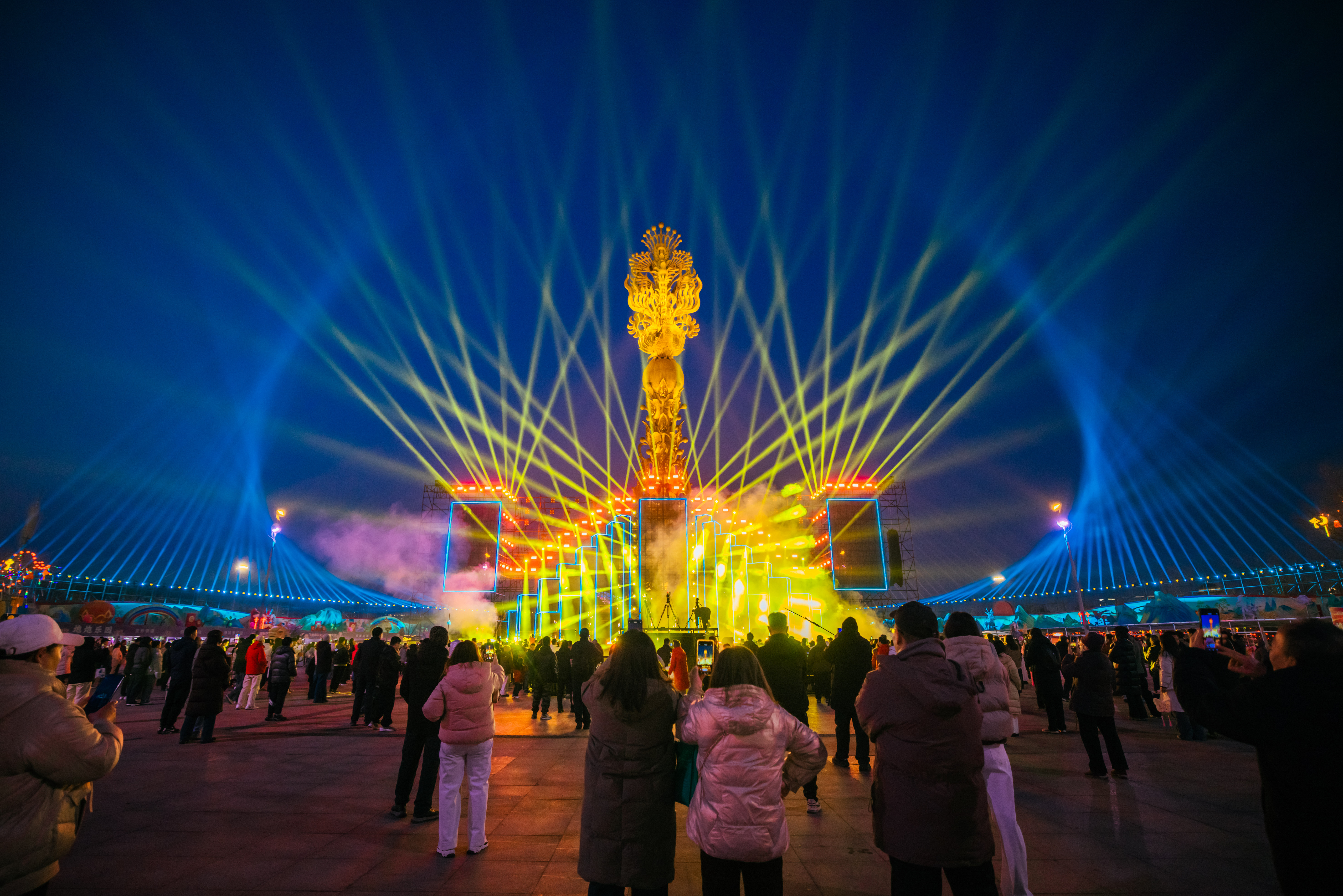 本届灯会深度融合传统民俗底蕴、前沿科技力量与时尚潮流元素,精准契合马年新春主题,全面强化AI科技赋能,设置“潮趣新春、唐山热恋、动物总动员、山海狂想、魅力唐山”五大主题赏灯区,精心打造潮玩新春、以梦为马、潮玩生肖、三生树、童话树屋、机甲灵龟等40组特色灯组,推出泡泡龙大舞台、花车巡游、无人机天幕秀、非遗打铁花、篝火狂欢等特色演出活动,汇集才艺大比拼、科技篝火秀、NPC点位演出、相亲大会等多元互动体验场景,聚合近百种各地特色美食,让每一位游客都能在光影流转间,沉浸式解锁马年新春的别样乐趣。